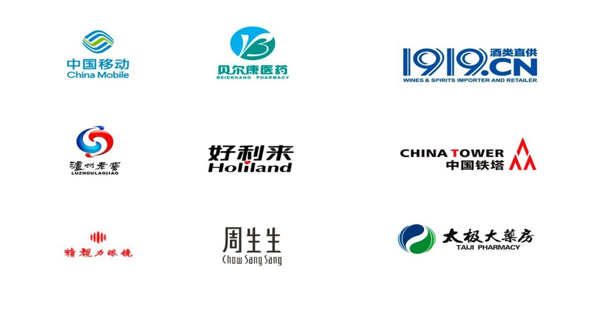 先后服務(wù)中國(guó)移動(dòng)、中國(guó)鐵塔、好利來、周生生、1919、瀘州老窖、精視力眼鏡、太極藥房、貝爾康藥房等品牌連鎖企業(yè)。(下方LOGO圖可以根據(jù)情況重新排版或更改底色以保持頁(yè)面呈現(xiàn)效果。)